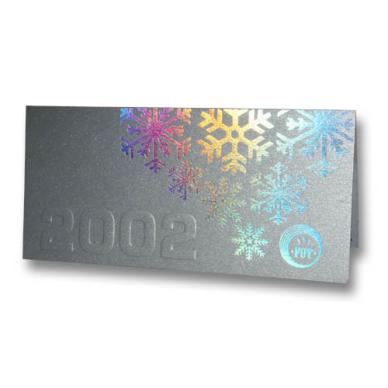 Формат: 200 х 100 мм. Бумага: 300 г Keaykolour серый, Тиснение голографической фольгой, конгрев. Пергамент для нанесения индивидуальных подписей лазерным способом.