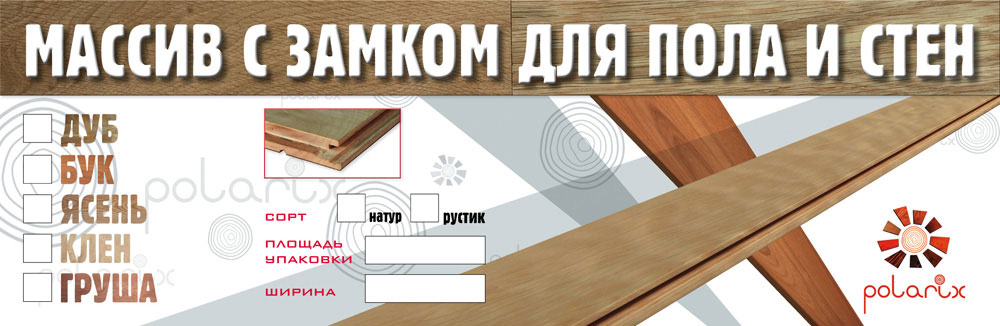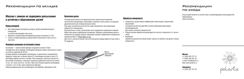В упаковки продукции, выпускаемой компанией Polarix, вкладываются теперь такие вкладыши, на лицевой стороне которых приведена подробная информация о породе дерева, сорте, доски, способе обработке и пр., а на обороте подробные инструкции по укладке, дальнейшей обработке, уходе и т.п.