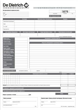 Для компании De Dietrich изготовлен сервисный протокол, необходимый для проведения обслуживания и ремонта отопительной техники, поставляемой компанией на российский рынок.