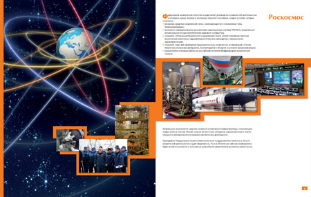 Вышла в свет очередная брошюра о Роскосмосе. К международным выставкам 2009 года (Ле Бурже, МАКС и др.) был полностью переработан содержательный и иллюстративный материал. Наша компания разработала новый дизайн для представления Российского космического агентства на международном рынке. Брошюра вышла в двух версиях: русской и английской.