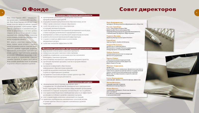 Главная /  Портфолио / Годовые отчеты / ФОНД НОВАЯ ЕВРАЗИЯ (2009)