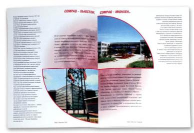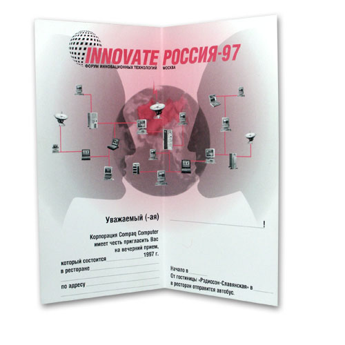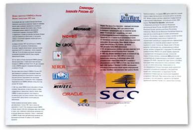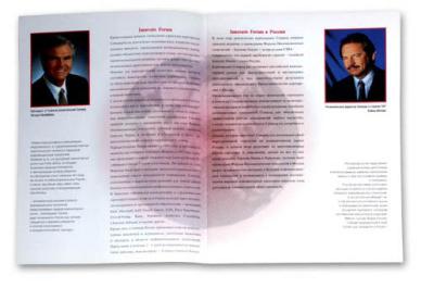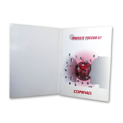 Папка 220 х 300 мм, два кармана; печать: офсет 2 + 0, конгрев. Брошюра 212 х 295 мм, 8 полос + обложка с карманом; печать: офсет 4 + 4. Листовки 210 х 290 мм; печать: офсет 4 + 4. Буклет 200 х 200 мм, 2 сгиба; печать: офсет 2 + 2. Буклеты 210 х 297 мм, 2 сгиба; печать: офсет 1 + 0. Приглашение 200 х 100 мм; печать: офсет 4 + 4, высечка. Приглашение 100 х 200 мм; печать: офсет в 2 краски + шелкотрафарет в 1 краску, бумага Хромолюкс. Плакаты 2 х 2 м, широкоформатная печать с нанесением на пластик.