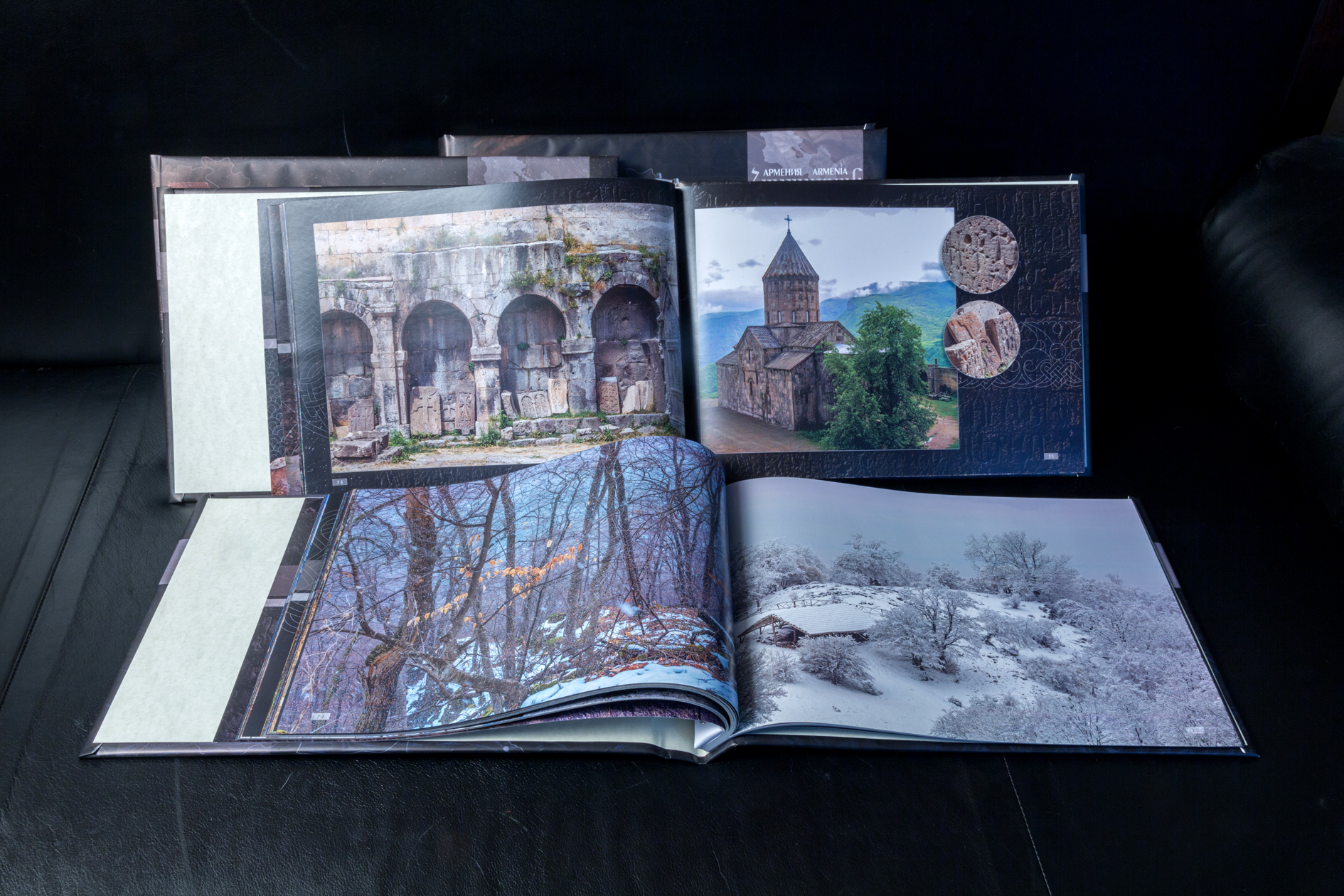 Серия фотоальбомов “Армения”, в которых представлены архитектурные памятники и природа Армении. Формат 40 х 26 см, от 96 до 144 страниц. Идея создания, фотосъемка, дизайн и верстка.