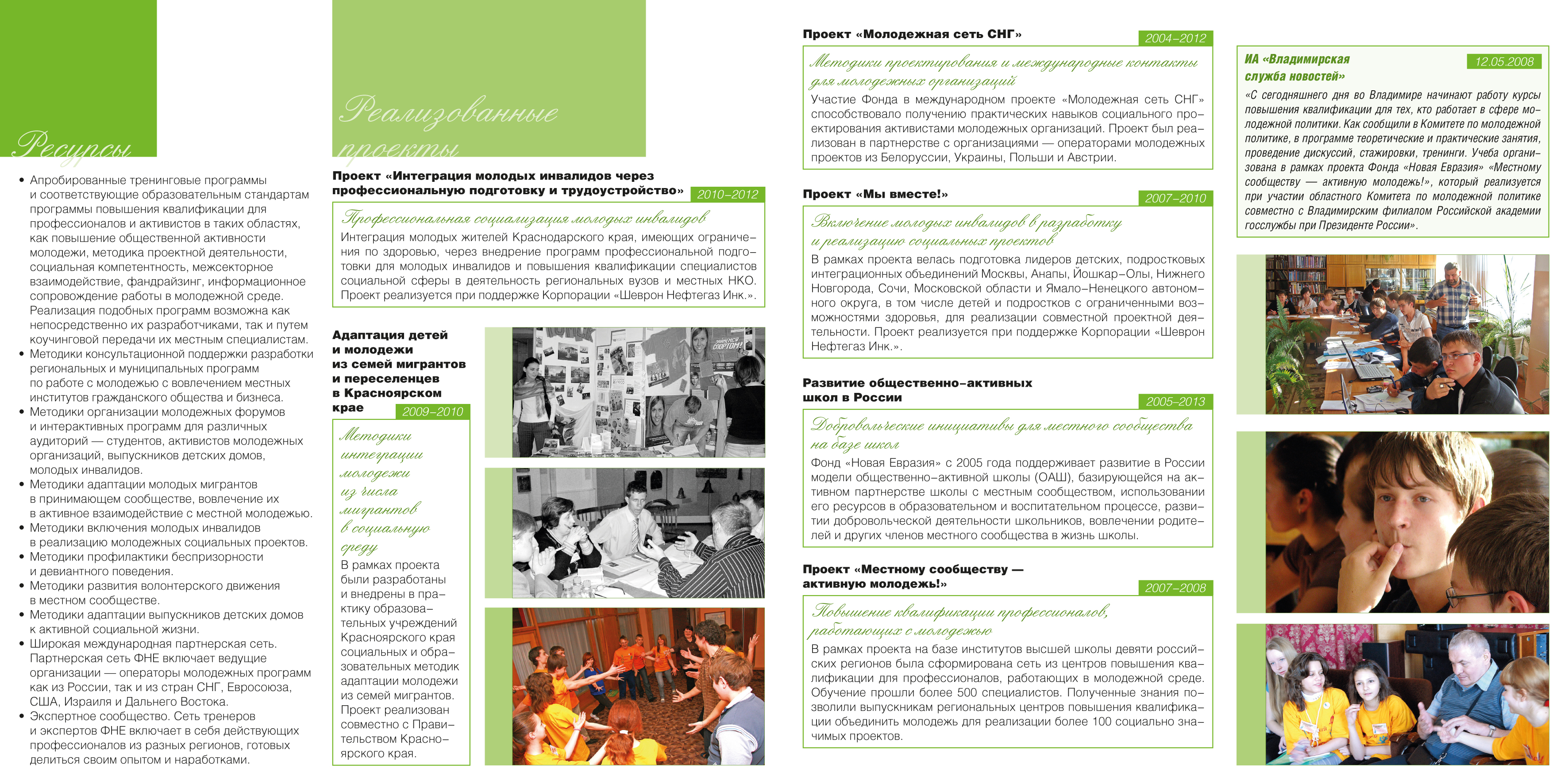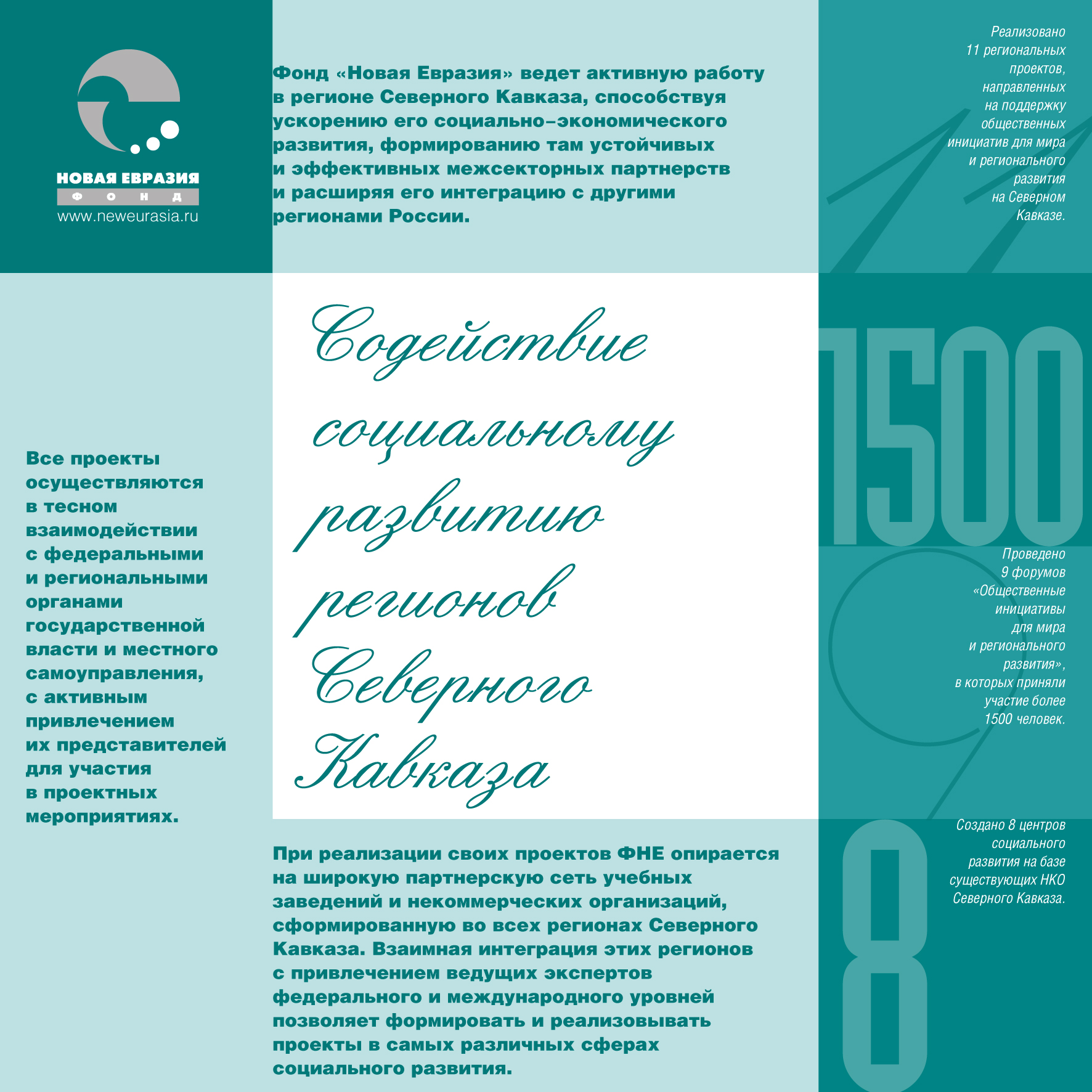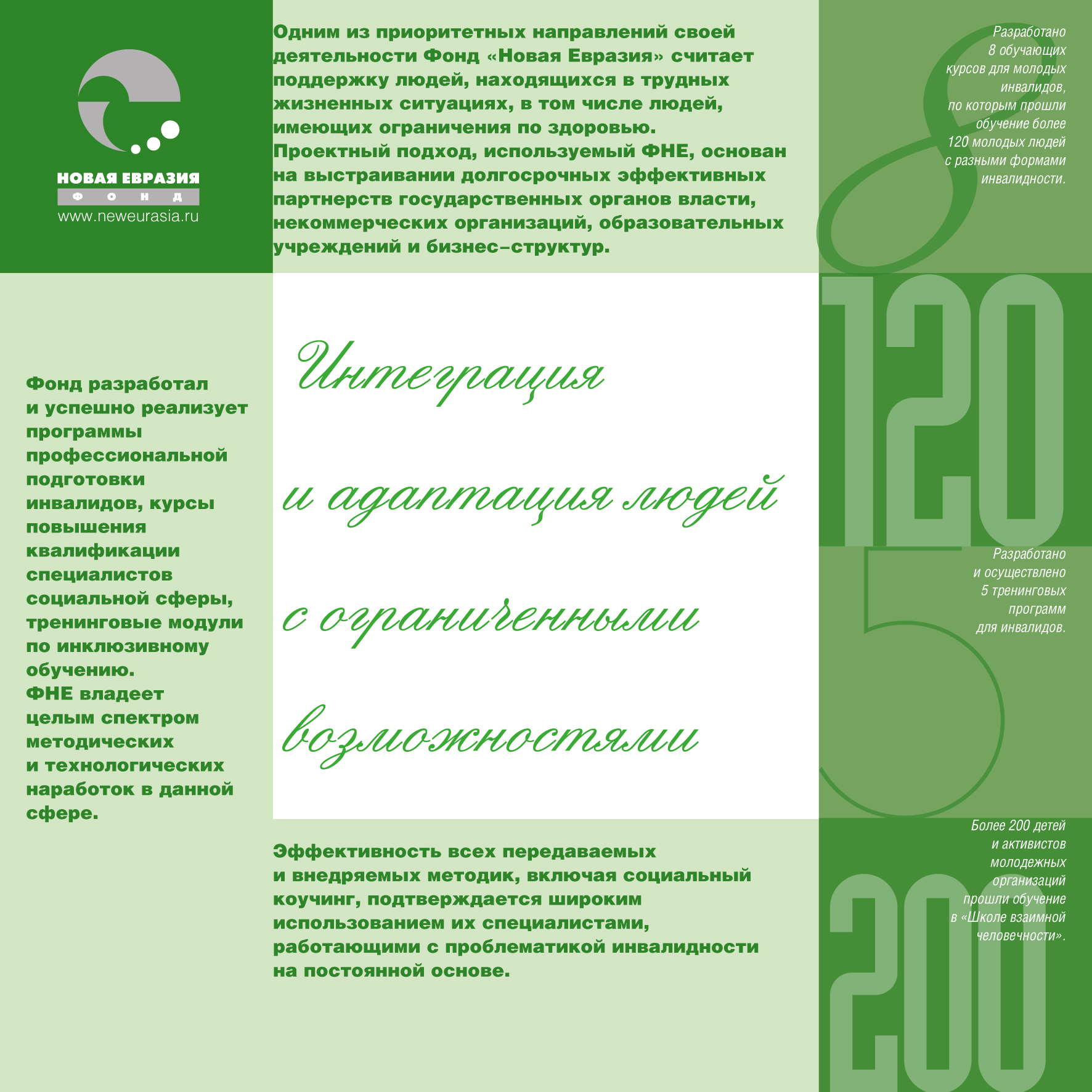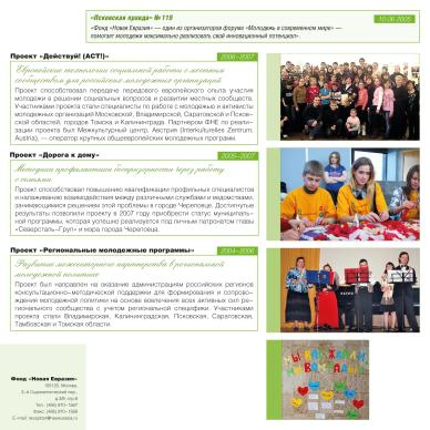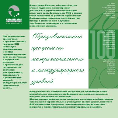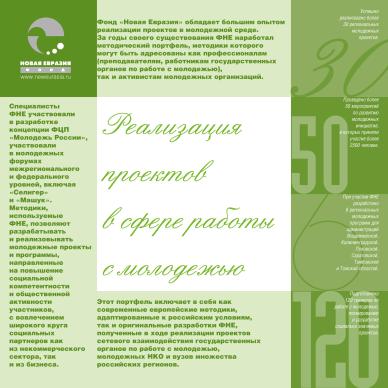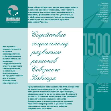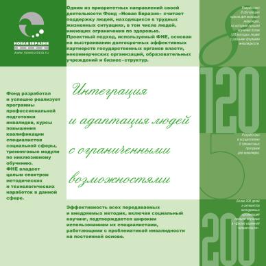 Набор листовок и буклетов в папке для программы фонда “Новая Евразия” по развитию социальной сферы. Дизайн, верстка.
