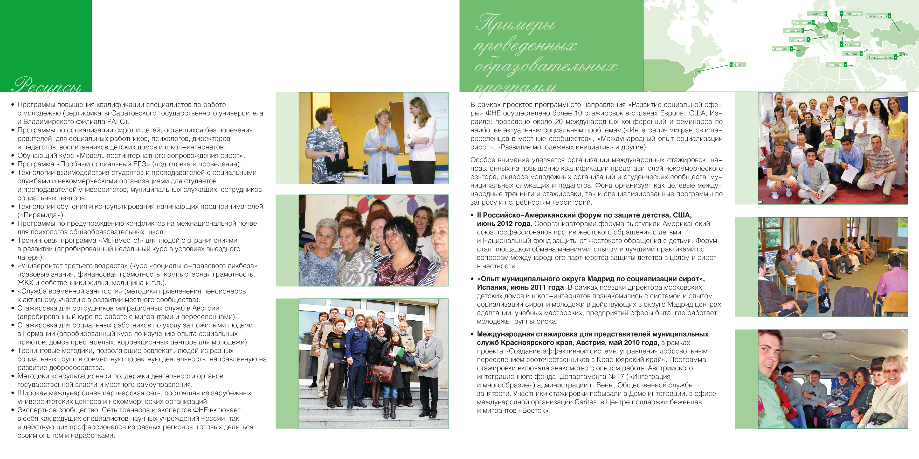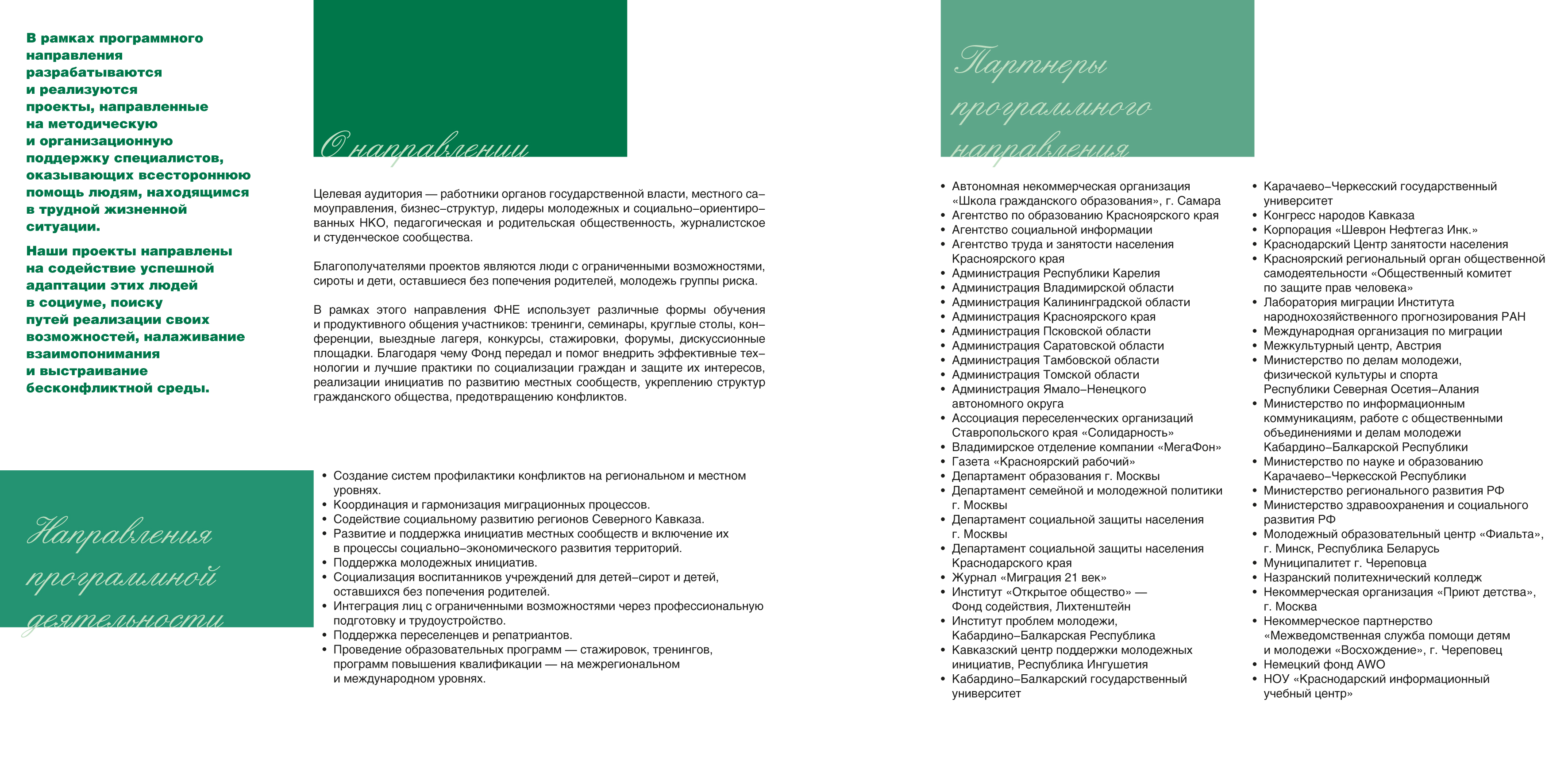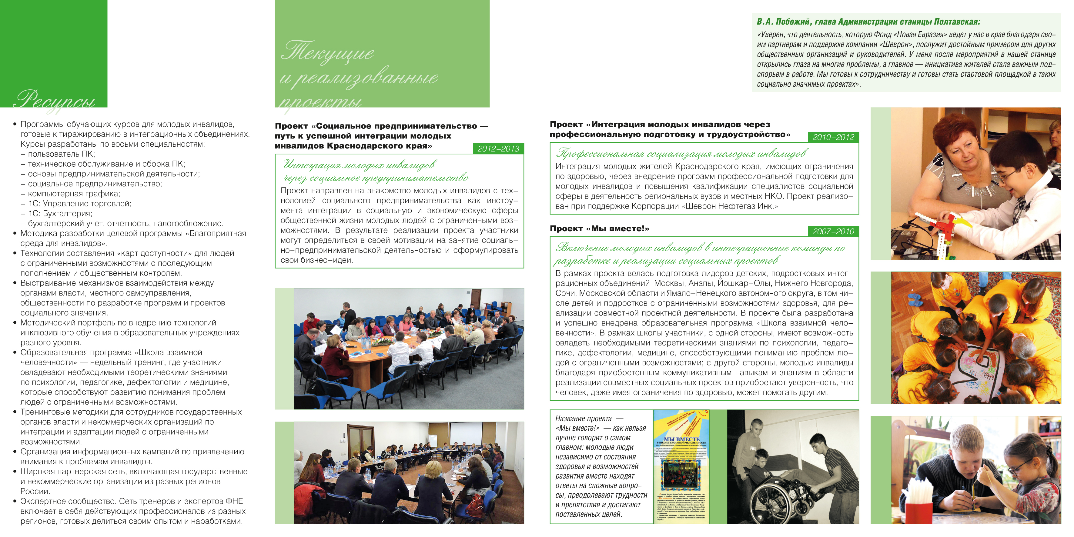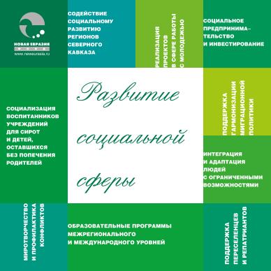 Набор листовок и буклетов в папке для программы фонда “Новая Евразия” по развитию социальной сферы. Дизайн, верстка.