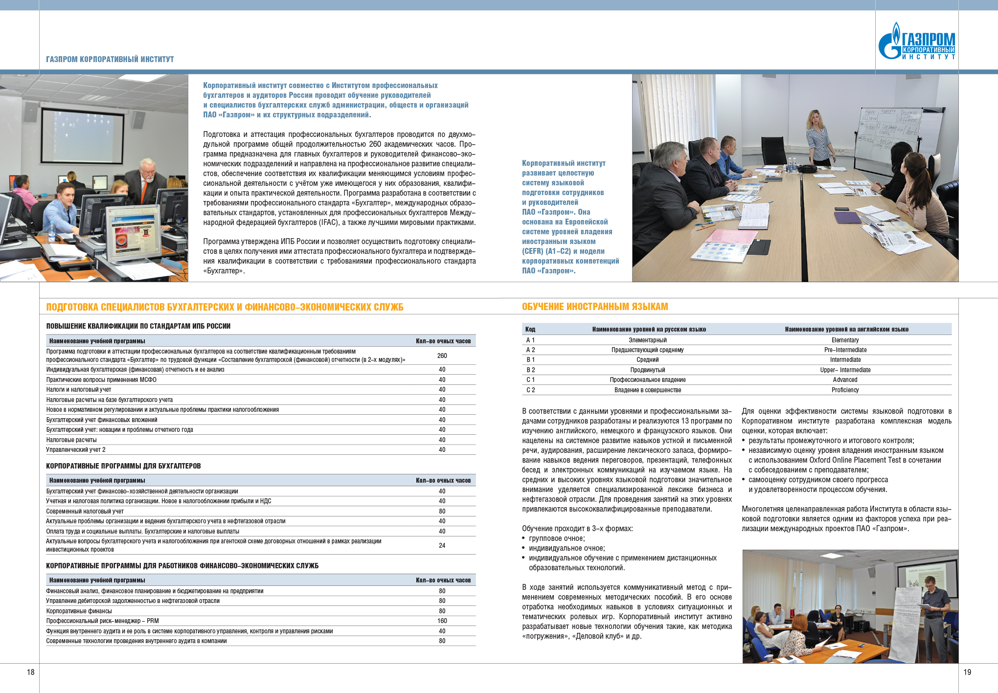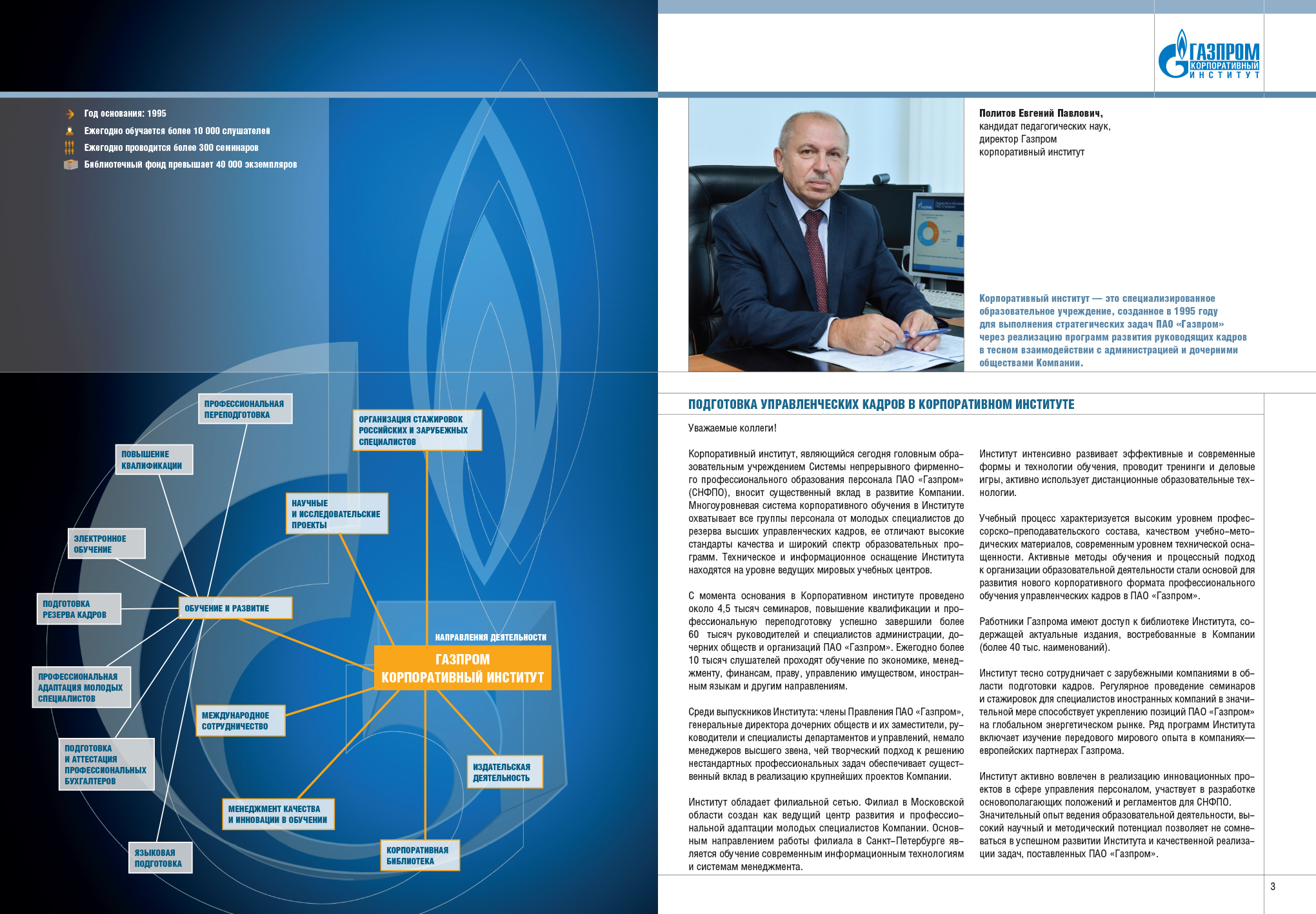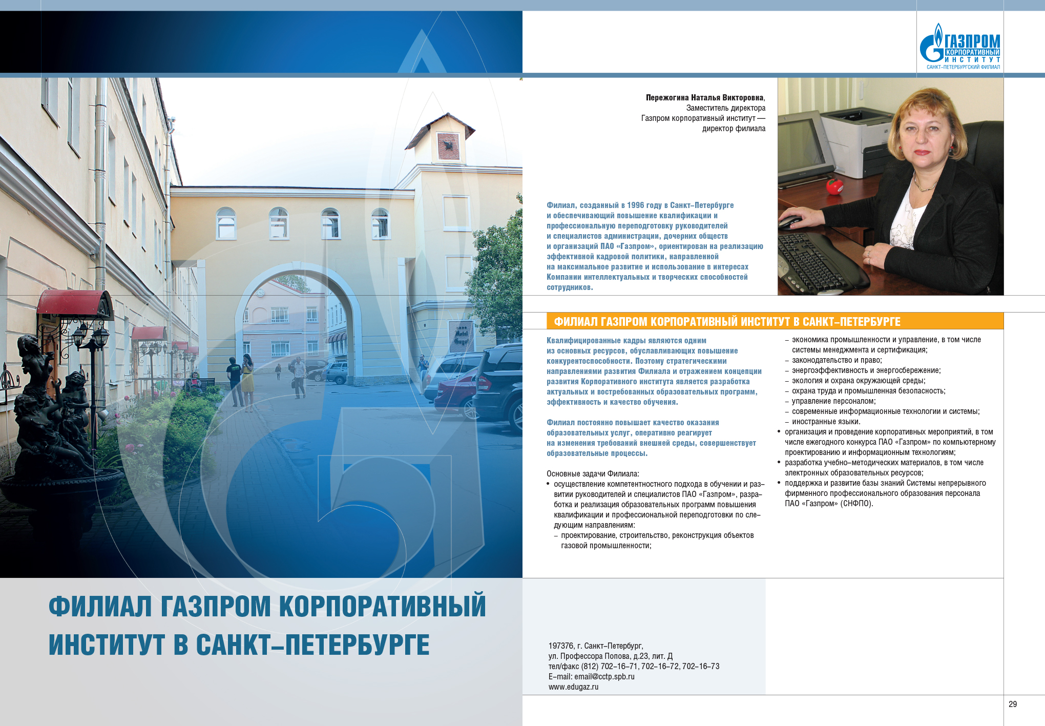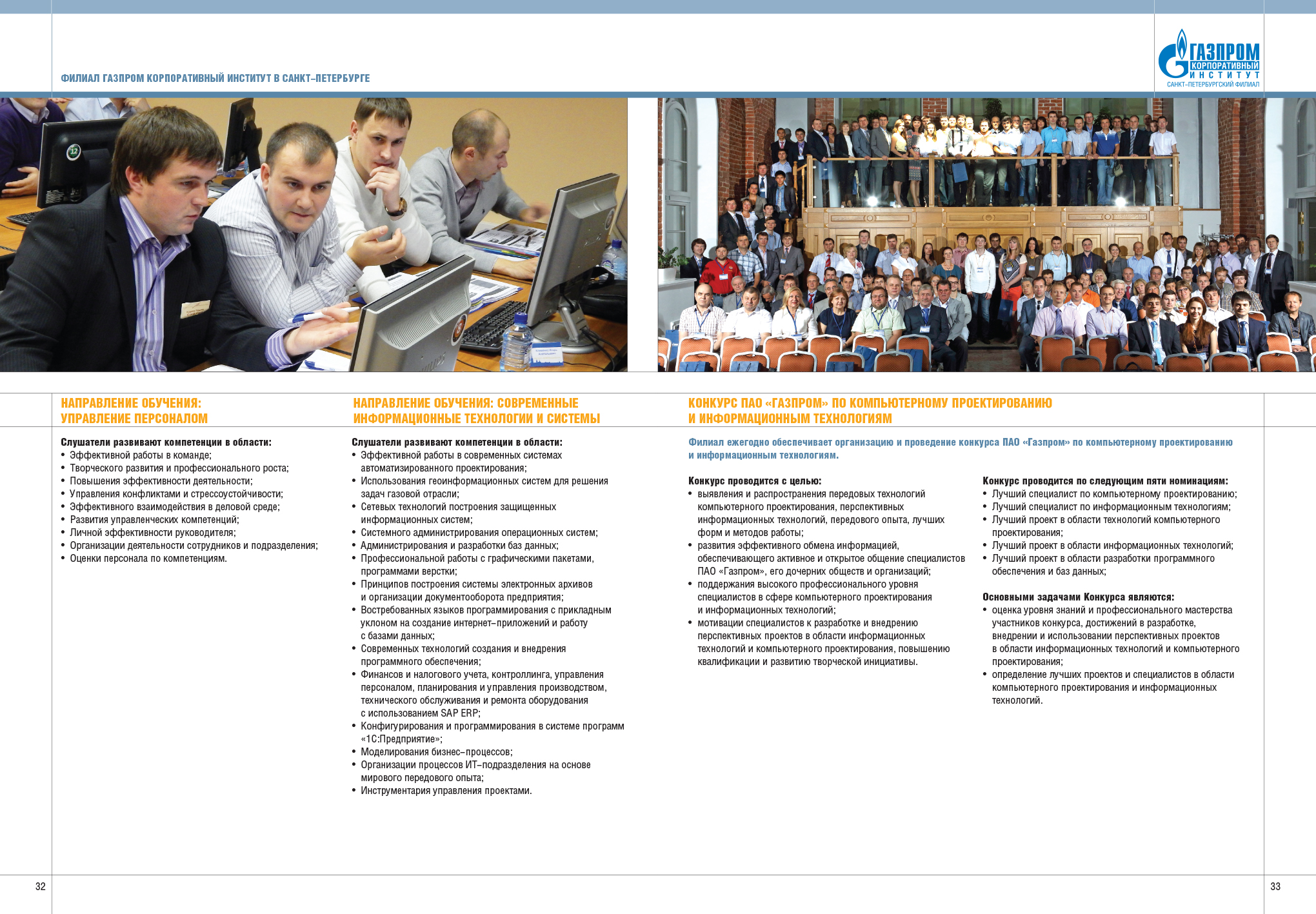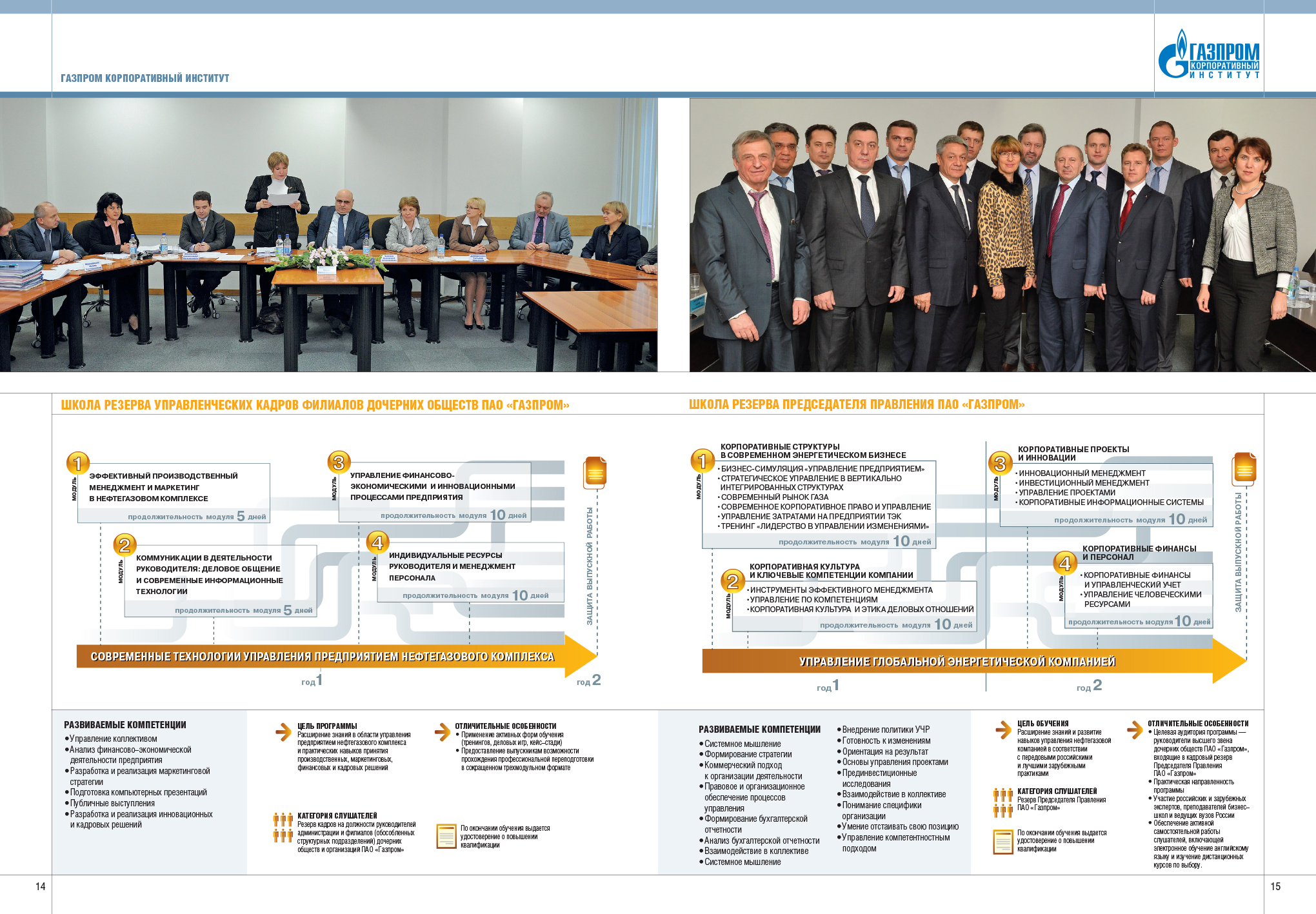Брошюра Корпоративного института Газпром с описанием филиалов института и программ проф. подготовки. Инфографика, дизайн и верстка брошюры.