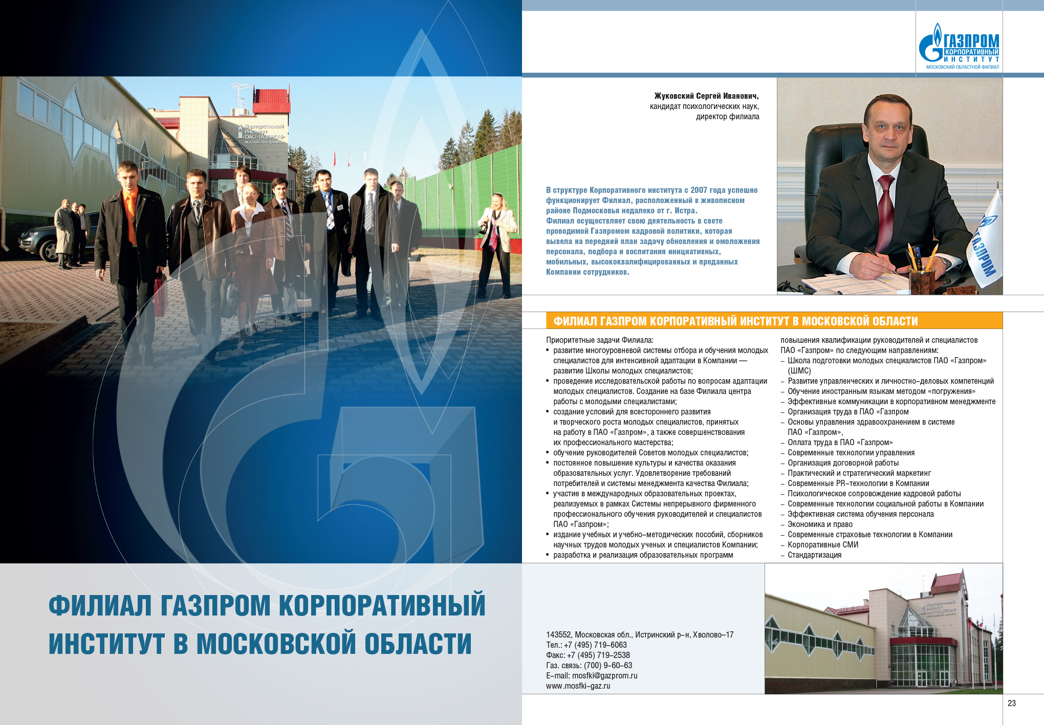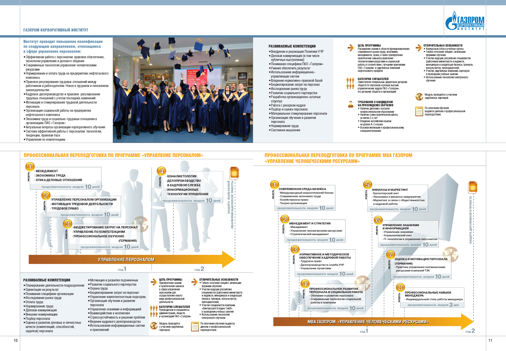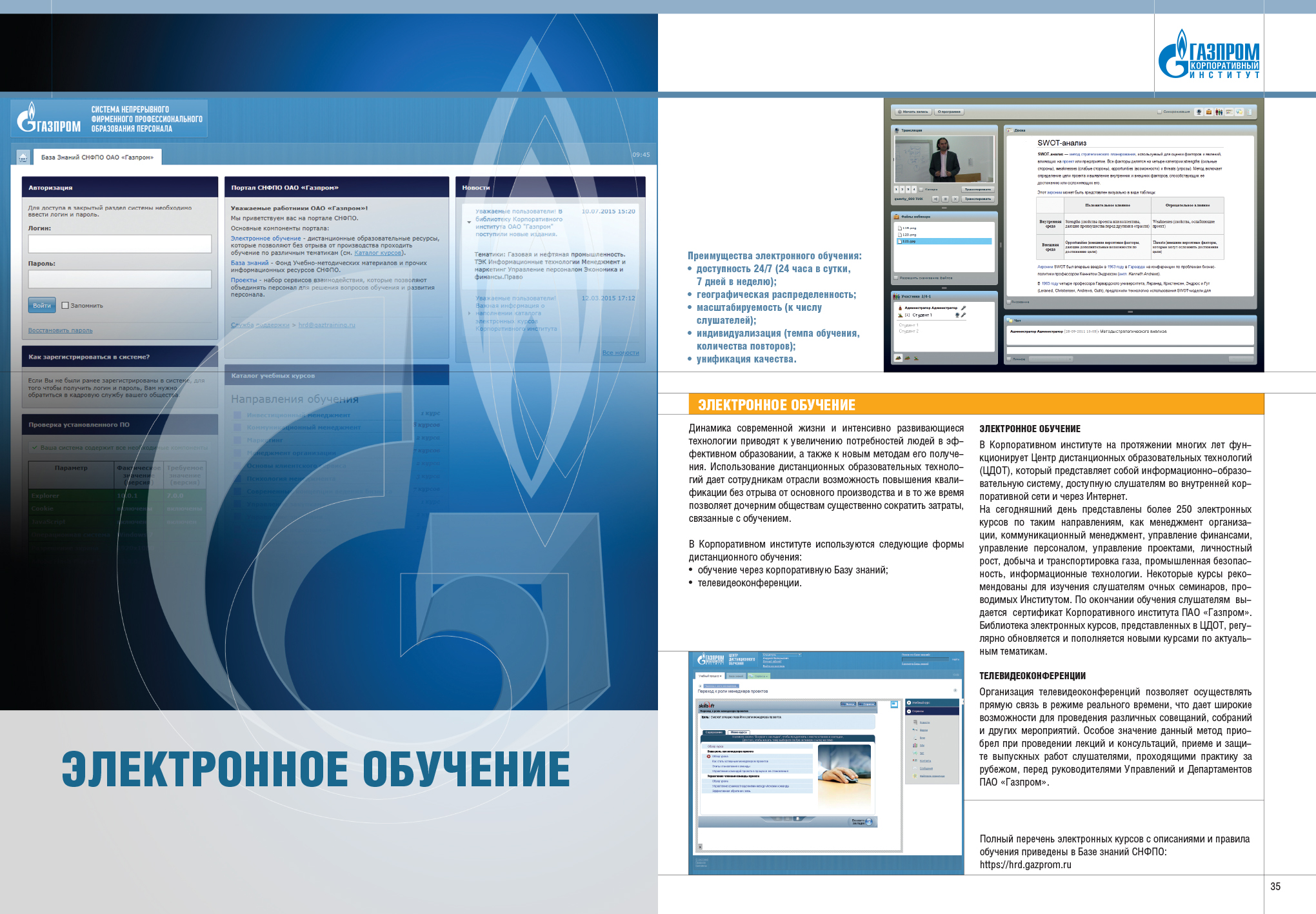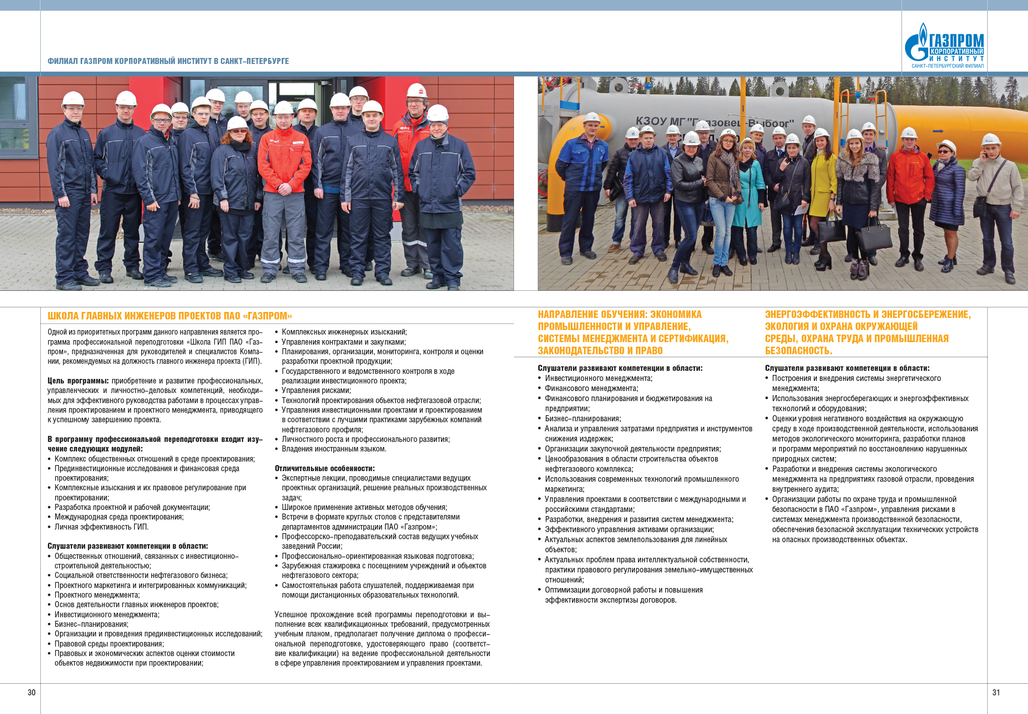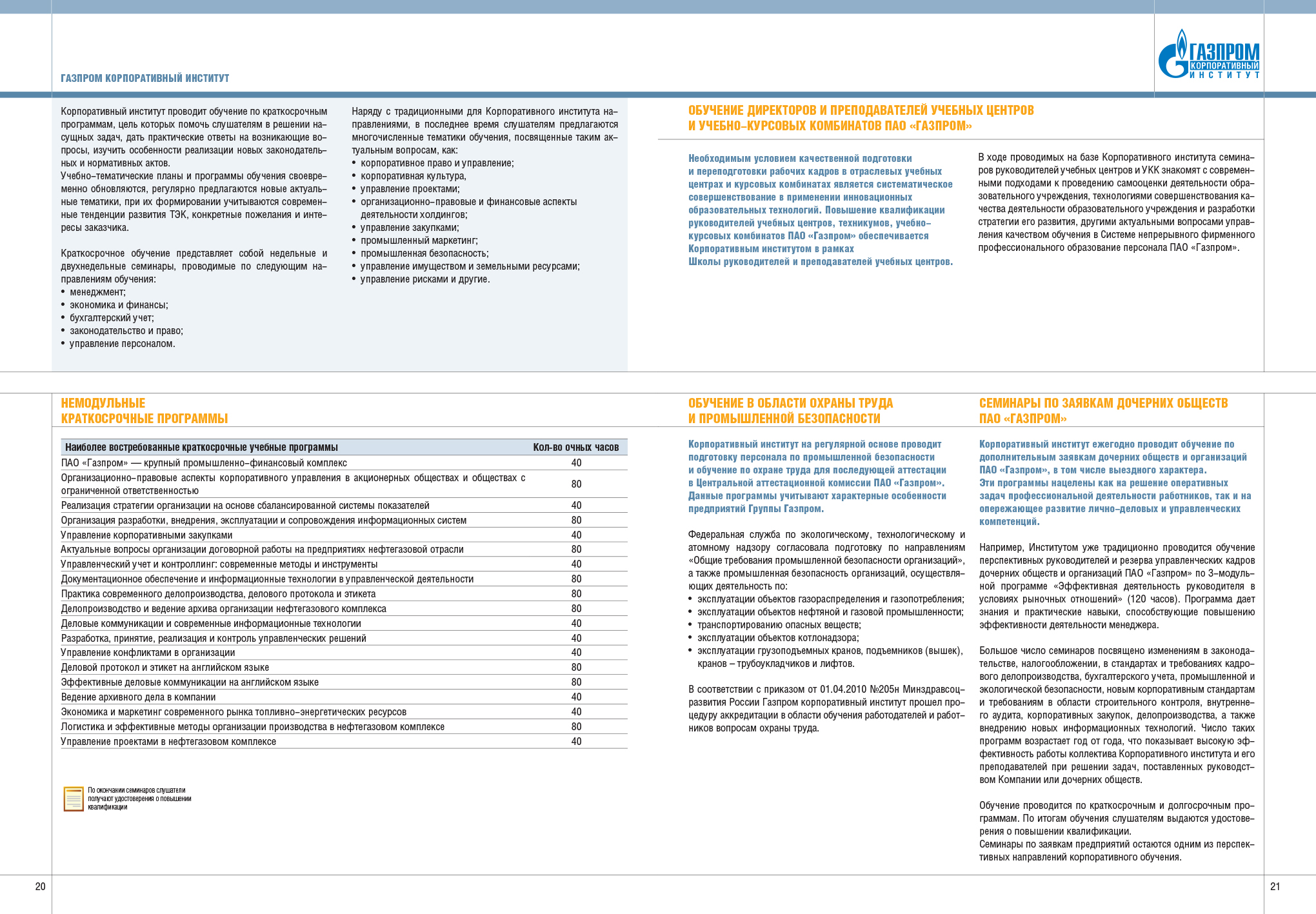 Брошюра Корпоративного института Газпром с описанием филиалов института и программ проф. подготовки. Инфографика, дизайн и верстка брошюры.
