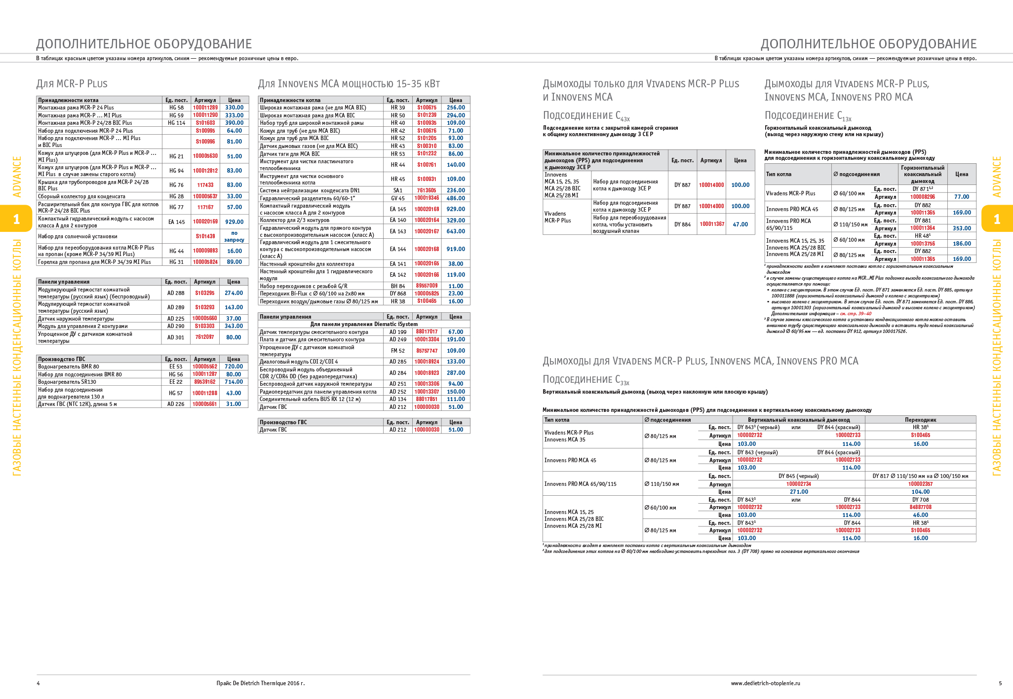 Прайс на продукцию компании De Dietrich (cистемы отопления). Дизайн и верстка..