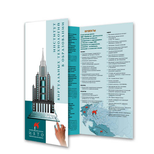 Буклет: формат 140 х 297 мм, 6 полос. Листовки: формат 210 х 297 мм. Печать: офсет 4 + 4.