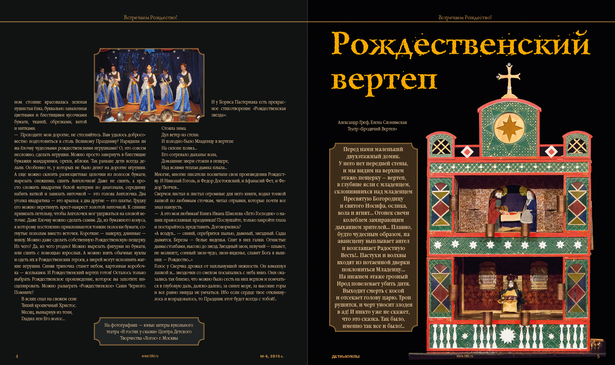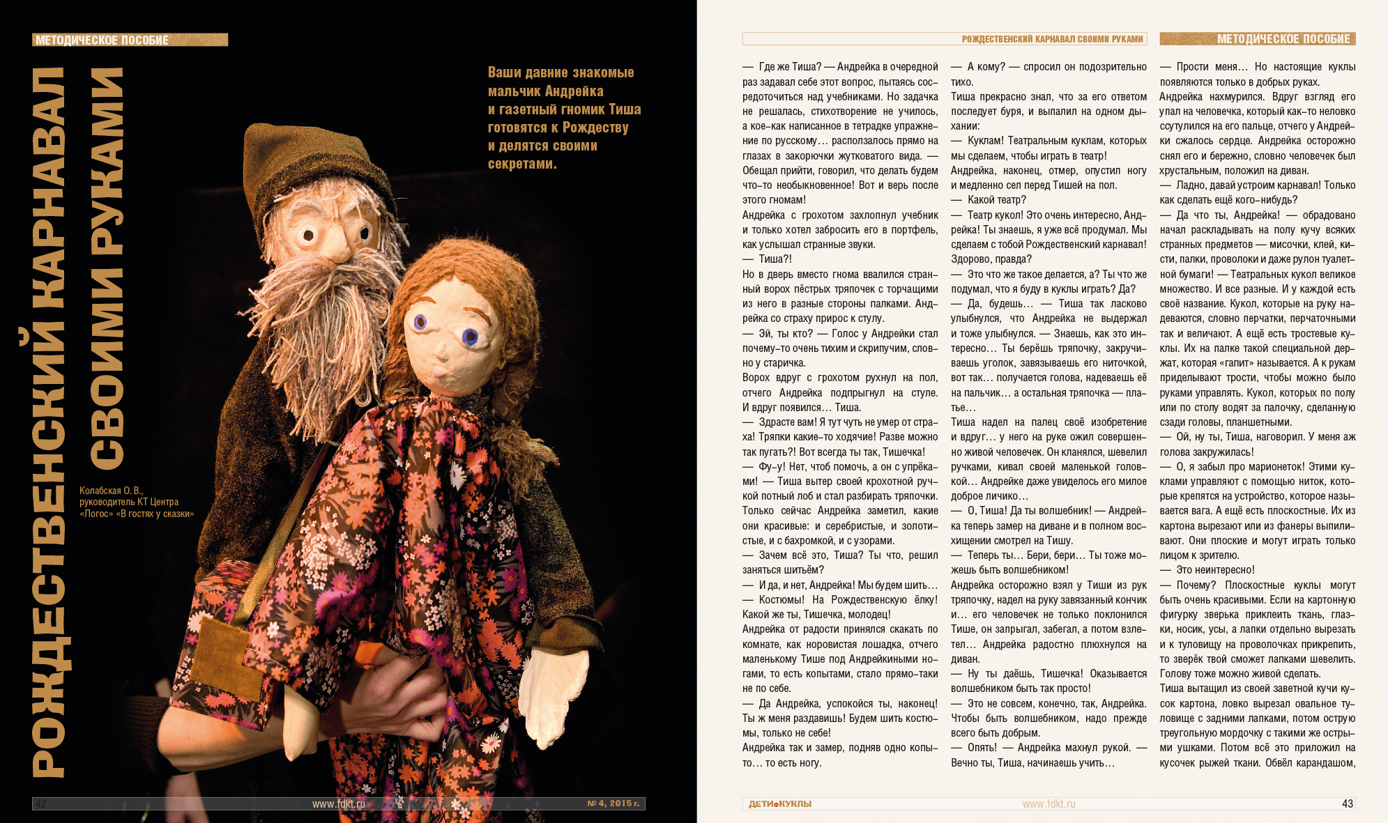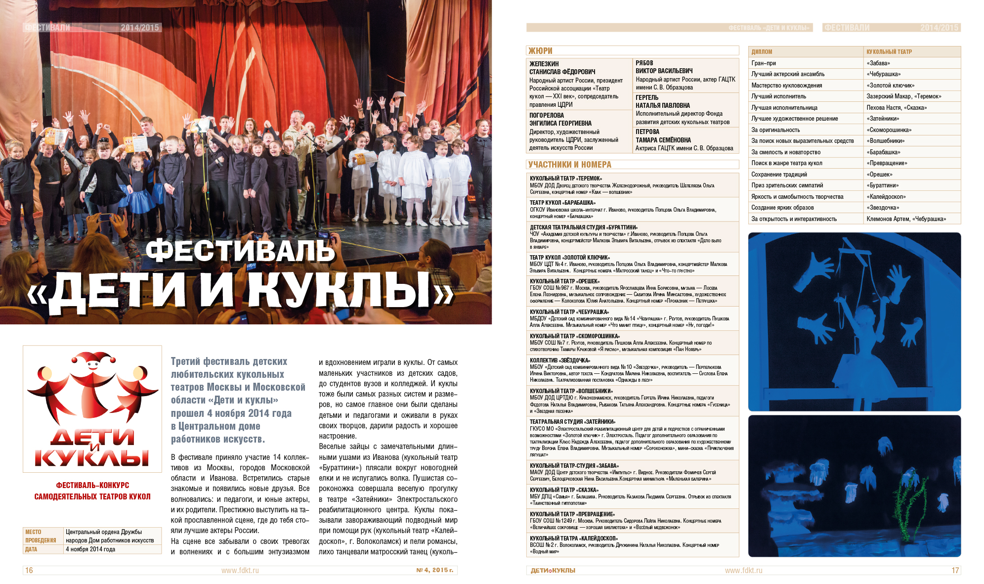 Фонд развития детских кукольных театров. Журнал А4, 48 полос. Идея создания, фотосъемка, дизайн и верстка.