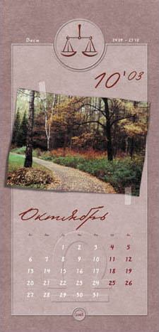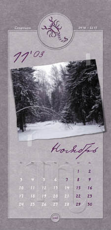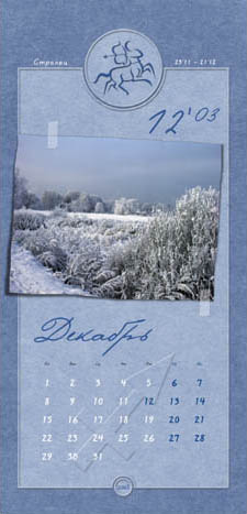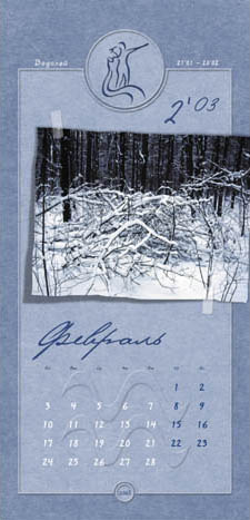 Формат: 280 х 570 мм, 12 листов + обложка. Бумага: 12 листов - 150 г Galerie Art, обложка - 200 г Galerie Art. Печать: офсет 4 + 0, ВД-лак 1 + 0, УФ-лак 1 + 0 глянцевый выборочный. Подбор, навивка по стороне 280 мм, упаковка в полиэтиленовые пакеты поэкземплярно.