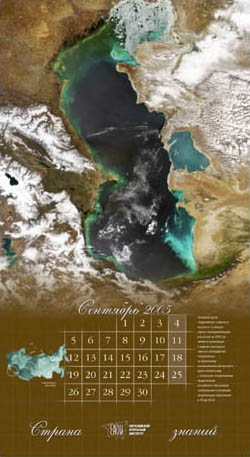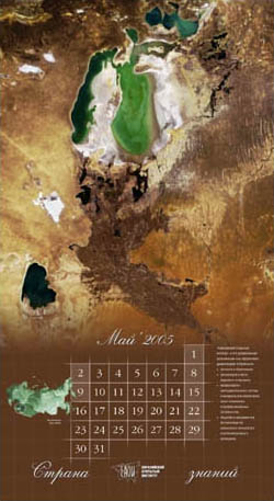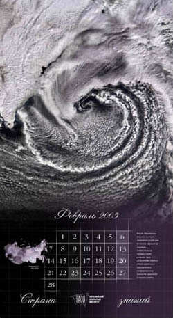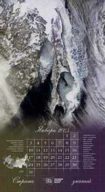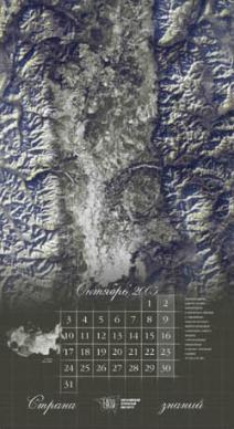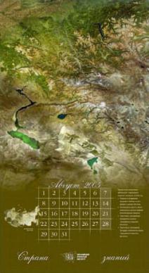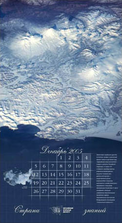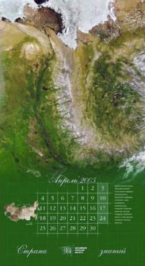 Идея проекта (в календаре использована съемка евразийской части Земли из космоса). Разработка концепции дизайна. Поиск, подбор и работа с изображениями, верстка, допечатная подготовка. Курирование печати.